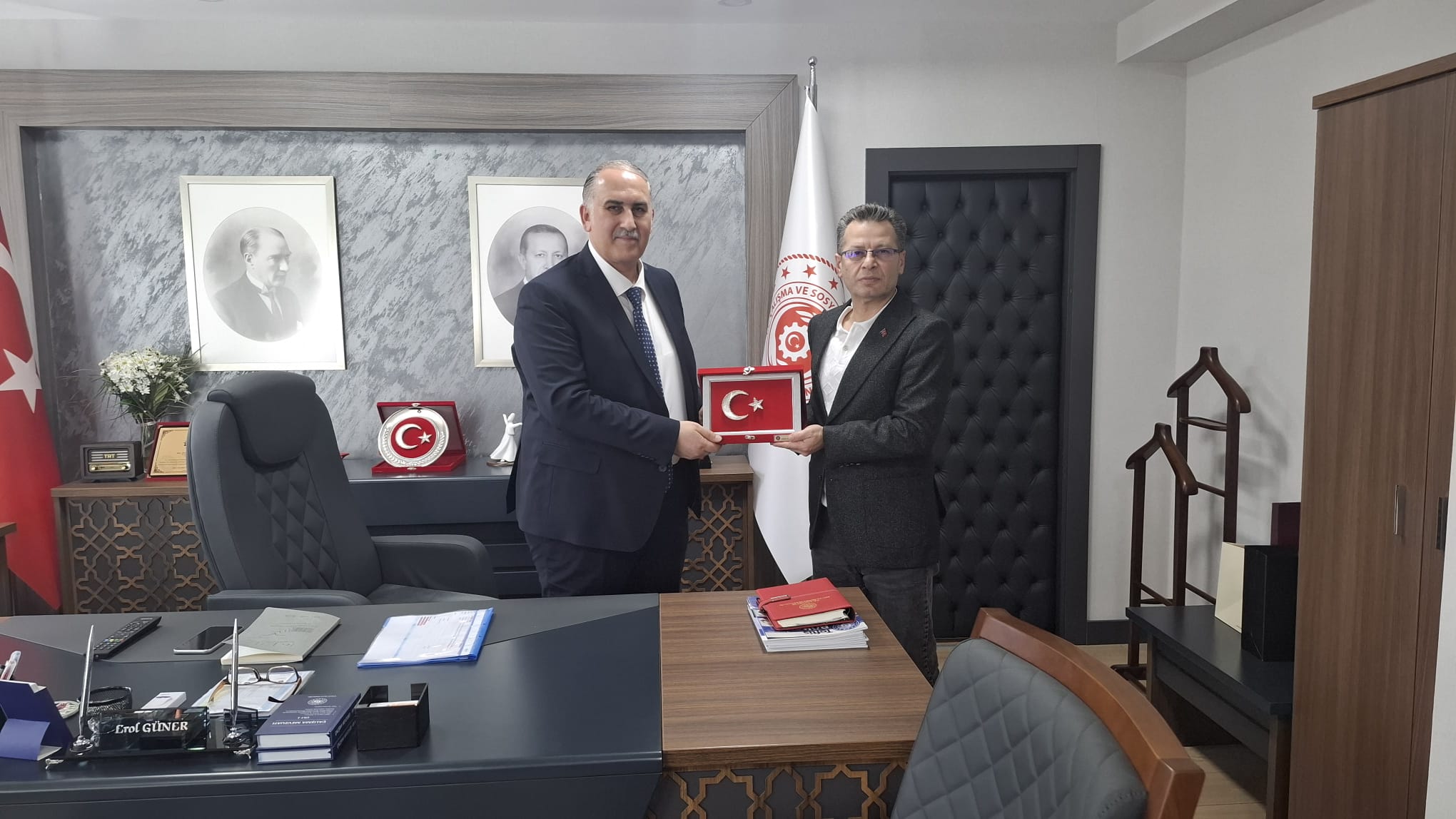 Genel Başkanımız Hakan Toy ve Genel Sekreterimiz Adem Sarıçoban Çalışma ve Sosyal Güvenlik Bakanlığı Rehberlik ve Teftiş Kurulu Başkanlığı’na atanan sayın Erol Güner’i ziyaret ederek iş yerlerimizdeki meslek kodları ve bazı kanuna aykırı uygulamalar, muvazaalı iş kolu değişiklikleri gibi çalışma hayatının güncel konularında değerlendirme bulundular. Yeni görevinden dolayı kendisi tebrik eder misafir perverliğinden dolayı teşekkür ederiz.